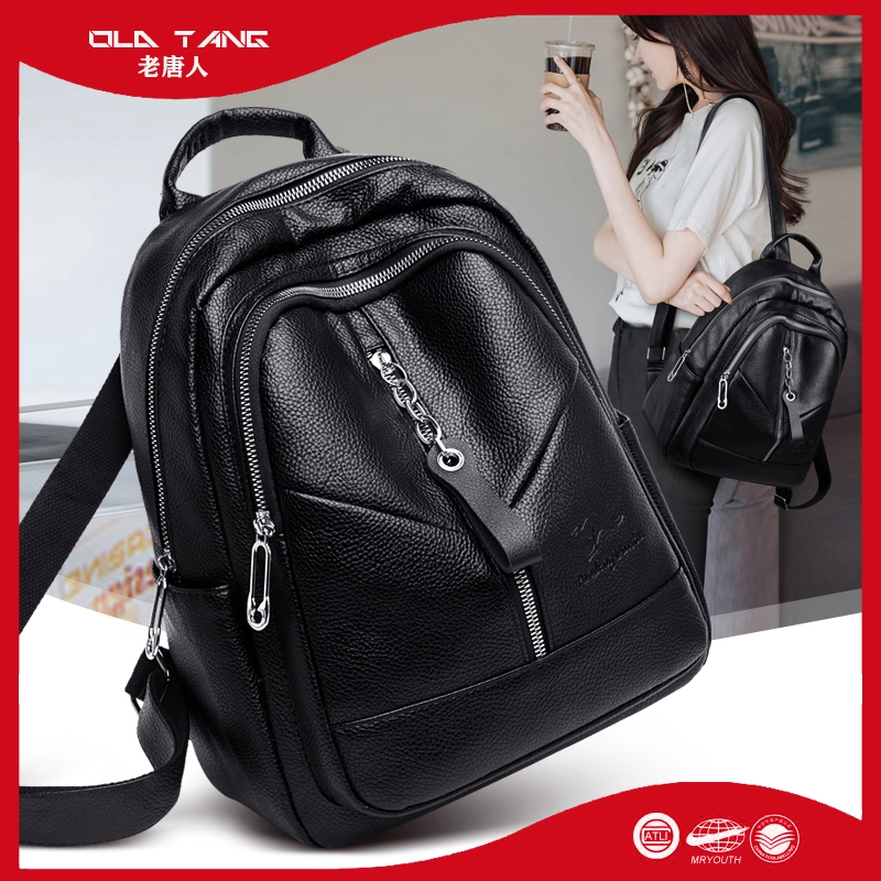 Spot High Grade Leather Women S Back Backpack Women S Bag 2020 New Korean Casual Versatile Black Soft Leather Backpack Women S Leather Leather Large Capacity College Style Student Bag Shopee Singapore
