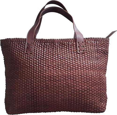 Leather Tote Bag With Woven Pattern Amazon Co Uk Shoes Bags